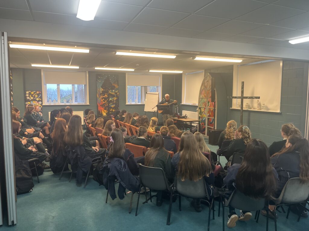 In addition to the always-popular music quizzes and team-building activities, Gerry’s workshops provided a meaningful space for students to explore their own values, strengths, and life experiences. He shared new insights from his own faith journey, prompting thoughtful discussion and reflection among the group. Of course, no retreat with Gerry would be complete without his wonderful musical performances, which students enjoyed throughout the week.