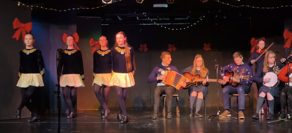 The school orchestra set the tone for the night, instantly getting the audience into the Christmas spirit with their festive performance. This was followed by a variety of solo and group performances including the TY Samba Group and both the Junior and Senior Choirs. A standout moment of the evening was the Senior Choir’s breathtaking rendition of O Holy Night, which even the Grinch himself would surely have been moved by. The Trad Group brought energy and excitement to the stage, complete with impressive performances from our talented Irish dancers. Ms Mehigan and Sean from The Dundalk Dolls blew the audience away with their performance, adding a professional sparkle to the evening.