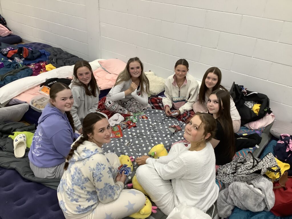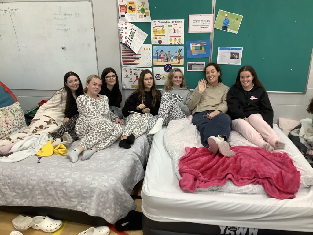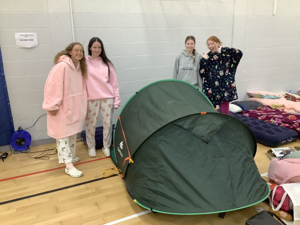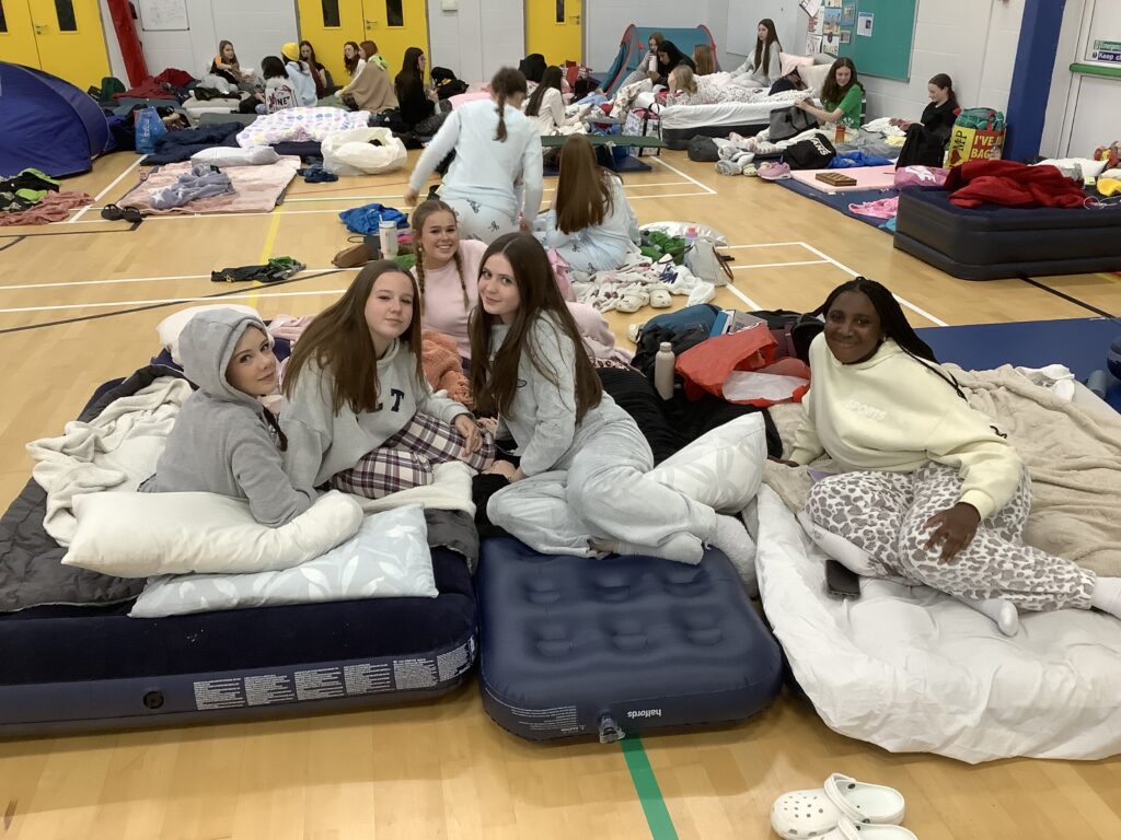 Over 150 Transition Year students and teachers braved Storm Amy on Friday night to take part in the Focus Ireland Sleepout. Equipped with sleeping bags, duvets, tents, and even blow-up mattresses, they have already raised over €17,000 (and counting) in support of families experiencing homelessness.