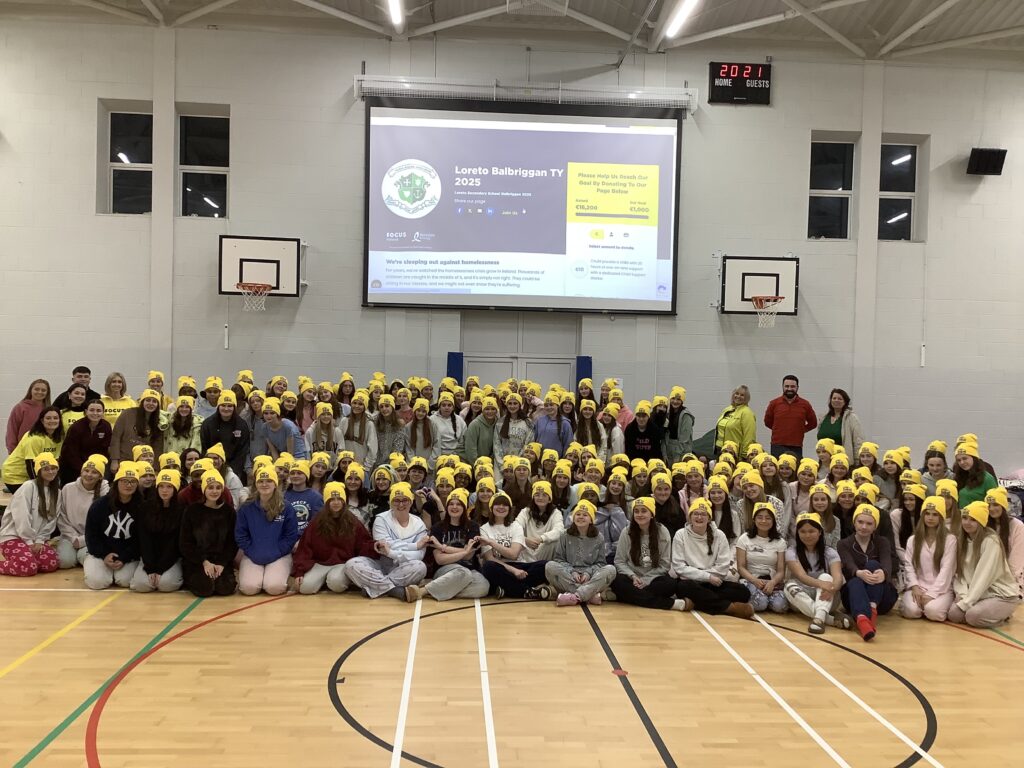 In preparation for the event, students were inspired by a visit from John O’Haire, Head of Family Services at Focus Ireland, who spoke about the vital work being done and the real impact of their fundraising efforts. A special thank you also goes to Hillary Copeland from Focus Ireland for joining us on the night, sharing words of encouragement, and presenting the iconic yellow beanie hats.