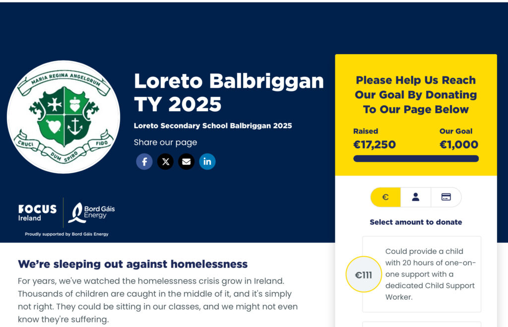 Transition Year Sleepout Raises Over €17,000 for Focus Ireland